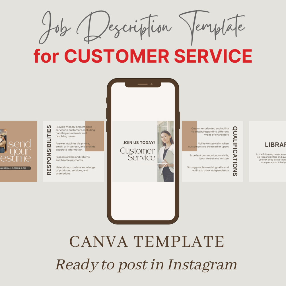 - Our Customer Service Job Description Template is designed specifically for use on Instagram, making it easy for businesses to post job listings directly to their social media pages. This can help to reach a wider audience and attract more qualified candidates.