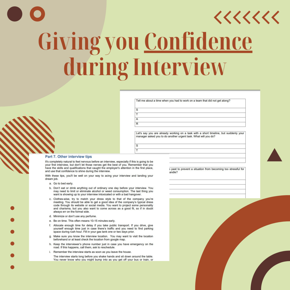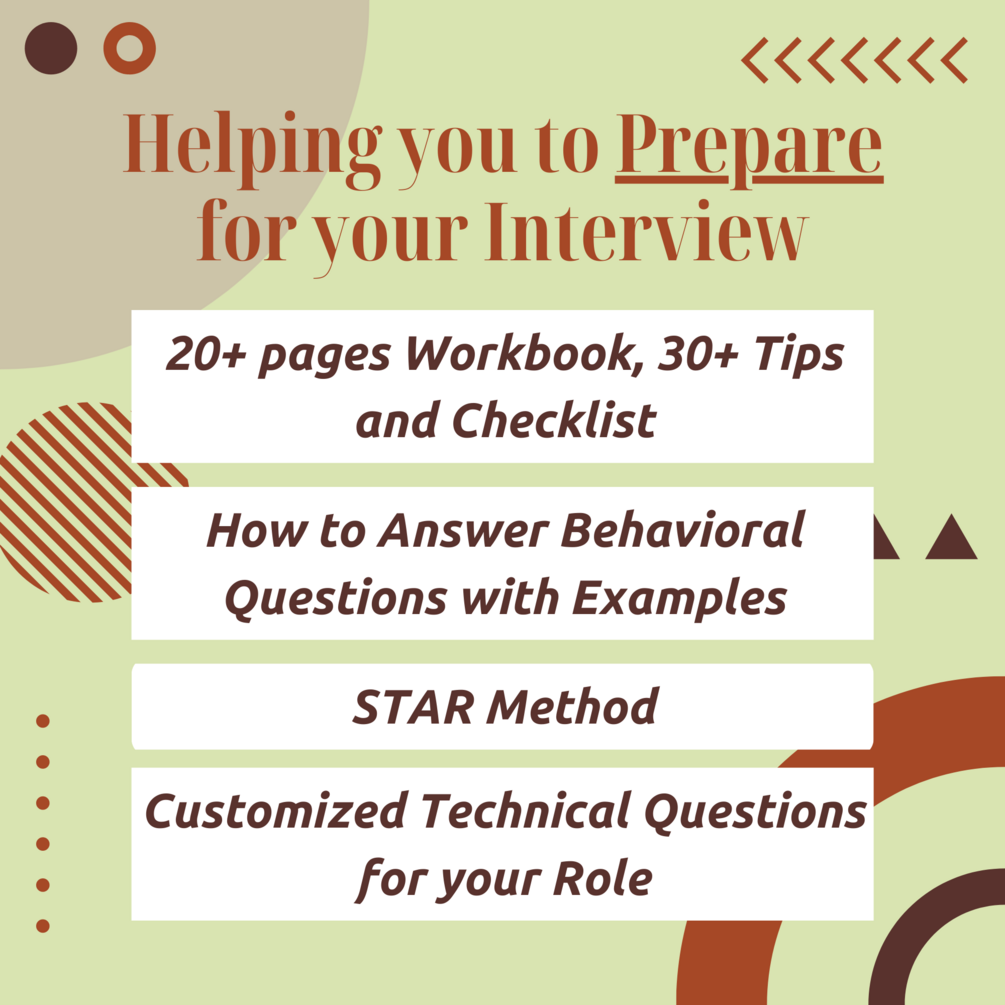 With over than 30 tips, step-by-step process, cheatsheet and checklist, you'll be fully prepared and confident for your upcoming interview.
